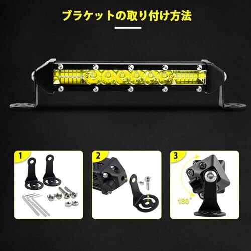 ☁【特別なビーム】この製品は7インチのLED作業灯ライトバー です。先進のLEDチップと投光器を組み合わせたもので、高輝度を実現するとともに、ランプの反射板を内蔵しているため、光の照射角度を広げることができ、お客様に高品質の体験を提供します. ☁【高品質】硬くて軽量なアルミ合金製で、破裂・着用が容易ではありません。自然環境では、アルミニウム合金は酸化皮膜を形成する可能性があるため、湿気の多い環境で強力な耐食性を備えています。密閉性が良いので、雨でも雪でも、あらゆる天候で使用できます。防水・防塵・耐衝撃の効果が良い。 ☁【優れた放熱性】高い素材を使用し、裏面のストライプ柄が多いので放熱面積が広がります。長期間の高温条件下でも、優れた冷却効果を発揮します。 ☁【簡単的な取付】本製品は、小さな取付金具やネジ、溝のデザインが豊富なため、簡単な設置と自由な角度です。 ☁【広い適用範囲】SUVやトラックのフォグランプ、自動車の荷台用の照明、フォークリフトのライト、除雪車のライト、海苔漁の常夜灯、夜釣りの照明、漁業用、農業機械用、建設機械等作業に、災害時の備えに、交通整理に、工事現場に様々な場面で活躍できます。