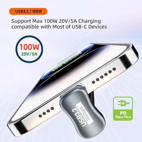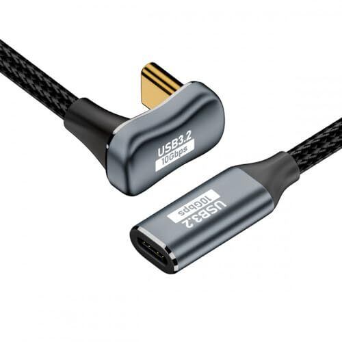 反対側のU字型バックアングルUSB-C USB 3.1 Type C オス-メス延長データケーブル 10Gbps 100W スリーブ付き Type-Cコネクタは反対のU字型バックアングルです。 角度付きタイプなので、ポート周辺のスペースが限られていてもメスポートに接続できます。 このUSB-Cケーブルは、USB-C、USB4、thunderbolt3/4ポート搭載デバイスからUSB-Cモニターに接続できます。シングル8K@60Hz、5K@60Hzまたは最大4K@60Hzに対応。 外部ディスプレイのビデオ解像度。 (お使いのモニターのType-CポートがDP代替モードのビデオに対応していることを確認してください。) このUSB-Cケーブルは、最大10Gbpsのデータ転送速度に達し、最大100W 20V/5A充電をサポートし、USB-Cデバイスを使用しているときに電力を供給します。 このType-Cケーブルは、Mac Pro 2024、2023、2022 2021、2020、2019、2018、XPS、Chrome Book、その他のDP代替モード対応デバイスなど、ほとんどのUSB-Cデバイス (主にノートパソコン) に幅広く対応しています。ハードドライブやドッキングステーションに接続してデータを得ることもできます。
