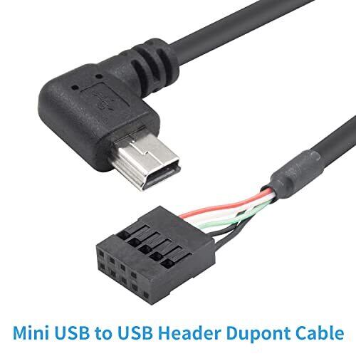 Duttek Mini USBマザーボードケーブル, 90度直角Mini USB右向きミニUSBオスから9ピンマザーボードメスアダプタデュポン延長ケーブル 1.65フィート/50cm 2個