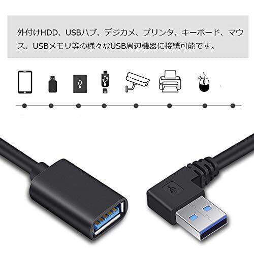 L字型のケーブル: USB設備の接続方向を変更し、狭いスペースまたは塀の角にもUSB3.0ケーブルを楽に使えます。 USB 3.0 延長ケーブル(タイプAオス- タイプAメス):USB3.0コネクタの周辺機器、パソコン、プリンターやカードリーダーなどの機器のケーブ ルを延長して接続するケーブルです。 USB 3.0急速充電とデータ同期:5Gbpsの通信速度、USB2.0より10倍速さを向上します。USB 3.0延長ケーブルはUSB 2.0ケーブルより10倍速く、またUSB 2.0とUSB 1.1の標準機器にも対応しています。 高耐久性:構造このケーブルは金メッキコネクター、純銅導体と箔&編組シールドの組み合わせでケーブルの性能が高まり、エラーフリーのデータ転送も実現します。 対応機種:パソコン:各社搭載パソコンなどUSB3.0ポート(Aメスコネクタ) を持っている機種に対応します。外付けHDD、USBハブ、デジカメ、プリンタ、キーボード、マウス、USBメモリ等の様々なUSB周辺機器に接続可能。