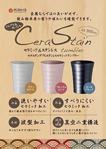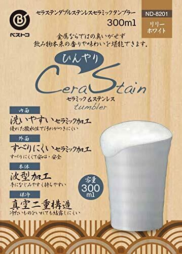 ベストコ ダブルステンレス タンブラー セラミック加工 300ml リリーホワイト ひんやり&あったか セラステン 保温・保冷 真空二重構造 陶器風 ND-8201