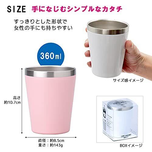 小倉陶器 真空断熱 ステンレスタンブラー 360ml 保温 保冷 二重構造 コンビニコーヒーカップ マグ (マットピンク) 約φ8.5×h10.7cm