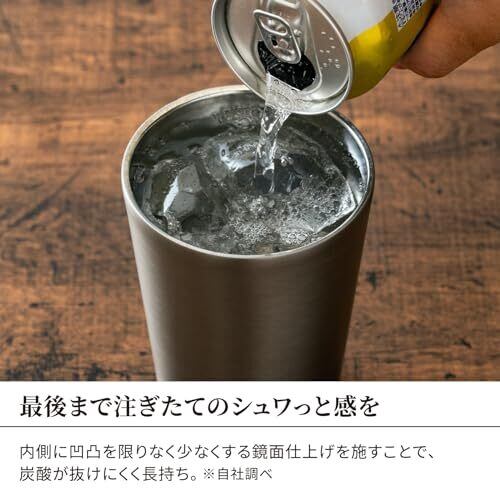 冷たく美味しい飲みごろ温度と炭酸が長持ちする酎ハイタンブラー。美味しさキープの秘密はステンレス真空二重構造と瓶内面を鏡面加工にあり! サイズ(約):幅9.7×奥行9.7×高さ14.4cm、口径/9.1cm、容量:0.65L、本体重量(約):0.23kg 素材・材質:酎ハイタンブラー/ステンレス鋼 生産国:中国 保冷効力:8℃以下(1時間)