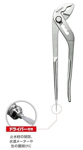 高儀(Takagi) ドライバー付き ウォーターポンププライヤー 250mm TKWP-250 日本製 口開き 5段階調整 パイプ外径 51mmまで 保持可能 3点保持 がっちり掴む マイナスドライバー 配管工事 メンテナンス