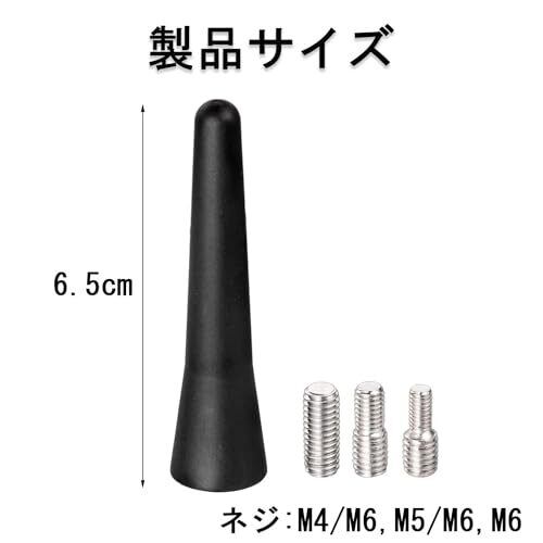 【 商品仕様 】 商品本体長:約6.5 cm 【ネジサイズ】4mm、5mm、6mm 【カラー】ブラック。 【高品質】高品質のゴム材料で作られた、アンテナは、優れた耐摩耗性、高弾性、耐高温性を有しており、長期間使用することができます。 【接続簡単】シンプルな製品構造で、設定がものすごく簡単です。既存のカーラジオ アンテナを取り外して所定の位置にねじ込むだけで、数分で取り付けられます。機械に苦手な方でも楽に設置できる車のラジオのアンテナです。 【受信信号】FMラジオアンテナ。 受信距離を伸ばし、弱い信号の感度を高めます。 良質のコアが信号を強化し、信号損失を減らし、よりクリアな局を拾うことができます。 【特徴】空力設計、ボディラインと統合し、低風抵抗,運転中に安定的な信号が得られます。