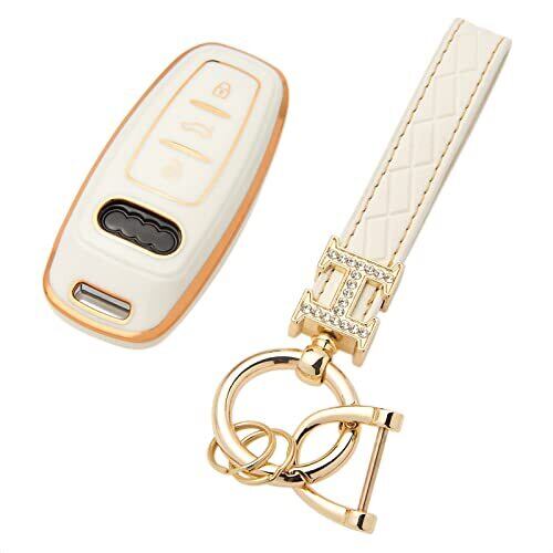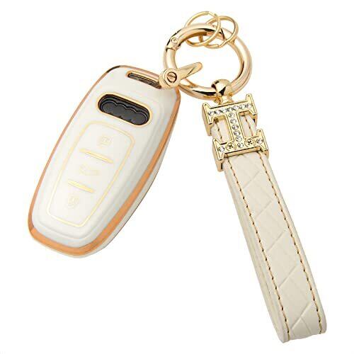 アウディに適用 2018 2019 A6 A6 Avant A7 A8 A8Lなど AUDI対応 キーカバー キーホルダー 3ボタン 汚れ 防止 アクセサリー オシャレ 高級 傷防止 落ちにく 保護 カバー 柔らかい 白
