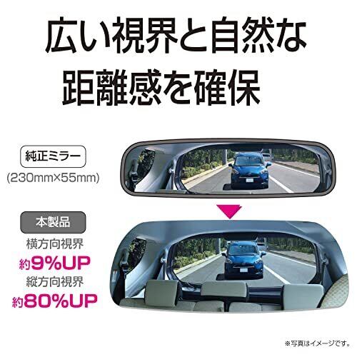安全なラウンドエッジ加工のフレームレスにより、鏡面積UP‼ 純正ミラーに比べ、本製品の横方向視界約9%UP!縦方向視界約80%UP! ハイトワゴンなどに最適です。 純正ミラーの縦:55mm~80mm、上辺寸法:160mm以上のサイズに取り付け可能です。