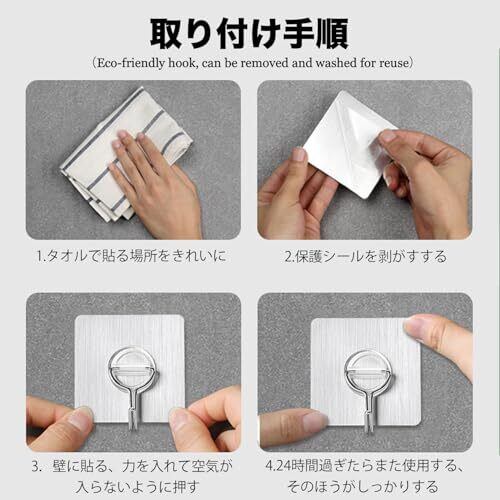 【2023年最新スタイル】吸着面は6*6cmの正方形で接触面積が広く、フックにかかる力を均一に分散させることができます。また、環境に配慮した透明なナノ粘着材を使用することで、美しいだけでなく、安定性に優れ、強い粘着力を持つため、粘着フックを釘のようにしっかりと壁面に貼り付けることができます。フック部分には、錆びにくく、耐荷重のある高品質な304ステンレスを使用。30kgの重さがかかっても変形しないので、吸盤フックよりも丈夫で長持ちします。 【簡単施工】穴あけ加工が不要なため、工具を使わず簡単に施工できます。時間と手間を節約しながら、すぐに壁フックを使用できます。 【再利用可能なフック】湿気や水に強く、何度でも使用できます。フックの位置を変えたい場合は、フックを取り外し、透明フックを水洗いし、ドライヤーで乾かすだけで粘着力が復活します。経済的で環境にも優しい製品です。 【180度回転フック】頑丈なフックを壁や天井に固定し、下のフックを180度回転させることができます。バッグ、ハンガー、傘、キッチン用品、冷蔵庫、子供部屋、バスルーム、リビングなど、さまざまなアイテムを掛けるのに便利です。また、クリエイティブなDIYにも活用でき、お部屋の中でスッキリとした暮らしを実現できます。 【品質保証】当社は品質に自信を持っており、万が一故障した場合でも、180日間の交換サービスを提供します。商品にご満足いただけない場合でも、ご連絡いただければ対応いたしますので 注:フックを取り付けた後、使用前に24時間放置してください。