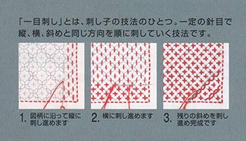 必要な刺し子糸(20m)の目安:5かせ 出来上がりサイズ:約縦34cm×横34cm セット内容:晒木綿(綿100%)、作り方説明書