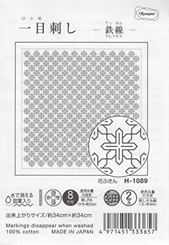オリムパス製絲 刺しゅう布 刺し子 花ふきん 布パック(白) 鉄線-クレマチス-(折り紙) H-1089