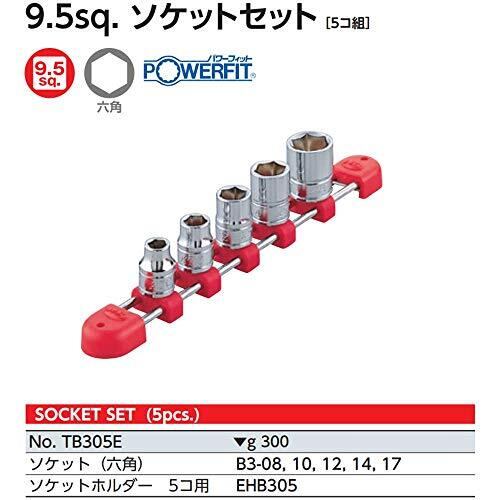 メーカー品番:TB305E 差込角:9.5sq. 組入点数:6 ソケット(6角):8、10、12、14、17 ソケットホルダー:5コ組