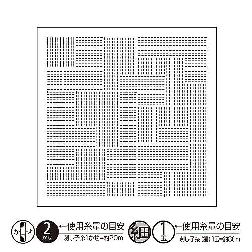 出来上がりサイズ:約縦34cm×横34cm 用意するもの:刺し子糸・刺し子針・縫い糸・縫い針・はさみ・アイロン・定規 キット内容:晒木綿・作り方説明書 製作目安時間:約15時間以上 難易度:初~中級者向け