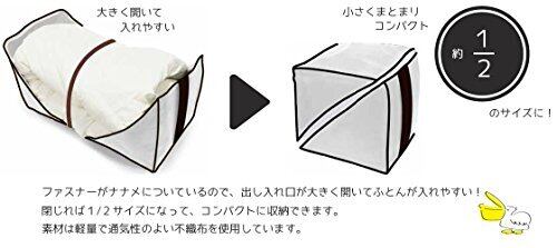 かさばる羽毛ふとんがキュッとコンパクトに!持て余している上棚にスポッと収納! 出し入れ口がナナメに開閉することで、かさばる羽毛ふとんをコンパクトに収納できます。素材には軽量で通気性のよい厚手の不織布を使用しています。 押入れの天袋やクローゼットの上棚など、使いづらくて空いていた高い位置にも使いやすい設計で、羽毛ふとんをキュッと収められます。