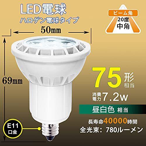 LED スポットライト e11口金 電球 調光器対応 ハロゲンランプ形 LEDダウンライト 昼白色 75形 相当 7.2w 780lm 中角タイプ 2個セット【 昼白色、中角約20度 】