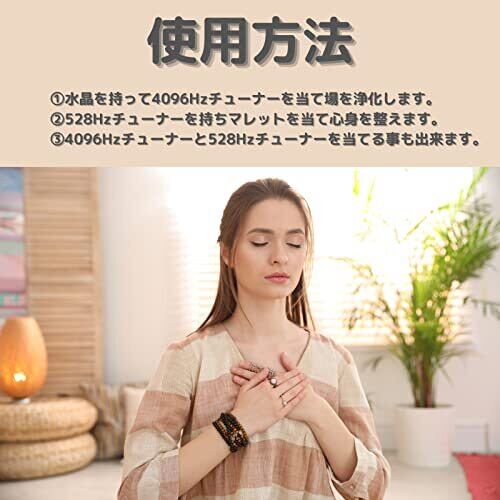 【8点セット】4096Hzチューナー、天然水晶、木製マレット、収納袋、528Hzチューナー、クリーニングクロス、ラバーマレット、収納袋 【528Hz】愛の周波数と呼ばれ、心身を安らぎモードに導く副交感神経に直接作用する音の要素が豊富に存在するので、交感神経優位で生じる多くの病気を予防したり改善することができます 【4096Hz】「Angelgate(天と地を繋ぐ天使界の扉)を開く音」と言われており、音の波動を通じて、人物や空間・物などの気を浄化できる効果があると言われています。 【使用方法】①4096Hzチューナーを利き手に持ち水晶に当て、場を浄化します。②マレットを利き手に持ち528Hzチューナーに当て、心身を整えます。③4096Hzと528Hzチューナーを当てる事も出来ます。 【アフターサービス】万が一商品に不備がございましたら、メールにてお問い合わせください。