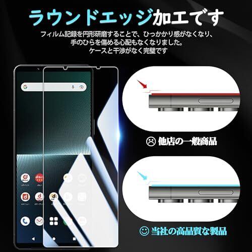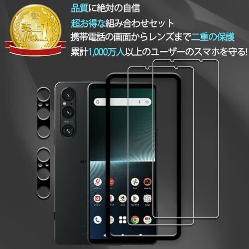 【対応機種】Xperia 1 V 2023 SO-51D SOG10 ガラスフィルム2枚 + カメラフィルム2枚。【注意】この電話の画面の端は湾曲しているため、保護フィルムのサイズが丁度良い場合、しっかりと貼り付けられず、白いエッジやシェルとの干渉などの問題があるため、保護フィルムは画面よりも小さいです。 【9H硬度・日本製ガラス素材】日本旭硝子製ガラス素材採用 最上級強度のガラスを使用し表面硬度は9H。万が一スマホを落としてガラスが割れても、 ガラス破片が飛び散らないような安心設計。 飛散防止 、ガラス破片から守ります。 【申し分ない透明感】:画質を徹底して追求するため、最高級のガラスを選択し、透過率を実現しました。透き通ったガラスフィルムに多層フィルタフィルムを採用し、素晴らしい透明度を確保して、一体感になって、まるで貼っていないみないような感覚で携帯の美しさはそのままにお楽しみいただけます。 【指紋防止、高感度タッチ】ガラスフィルムには撥油コーティングが施されており、指紋や汚れなどに強くなめらかな操作感を実現、付着した汚れなどは簡単に拭きとれます。こちらは高耐久撥油コーティングが施され、つるつるな滑り感を実現!ゲームしても渋くなし! 【気泡防止・貼付け簡単】気泡防止加工が施されているので、気泡が入りにくい。万が一気泡が入ってしまっても時間が経てば徐々に抜けるので 美しい仕上がりに。ガラスを液晶に置くだけで自然に吸着、簡単に気泡が抜いて行くので、誰でも簡単、綺麗に貼ることができます。フィルム貼りことが苦手の方でも簡単に貼る事が可能です。