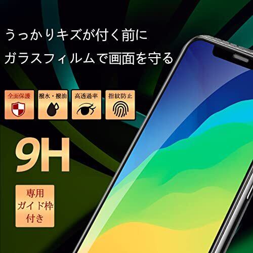 ガラスフィルム iPhone Xs/X / 11Pro 用 強化ガラス 液晶 保護フィルム 全面保護 アイフォン 11pro / 10 / 10s 用 画面 保護ガラス ガイド枠付き 2枚セット 透明-黒縁