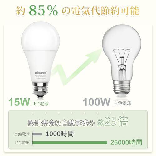 DiCUNO LED電球 E26口金 100W形相当 電球色 15W 1500lm 2700K 高演色性Ra90 広配光 A65 高輝度 調光器非対応 省エネ PSE認証済み 2個入