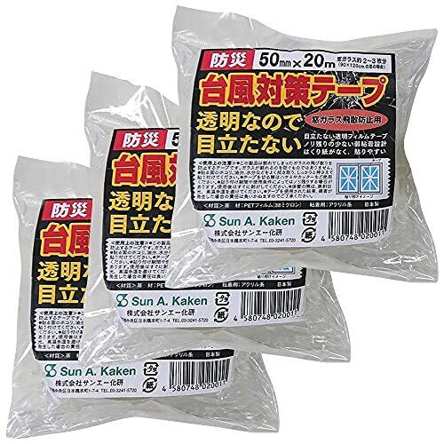 台風対策 テープ 50mm×20m (3個セット)台風 窓ガラス 飛散防止 PETフィルム アクリル系 防災 日本製