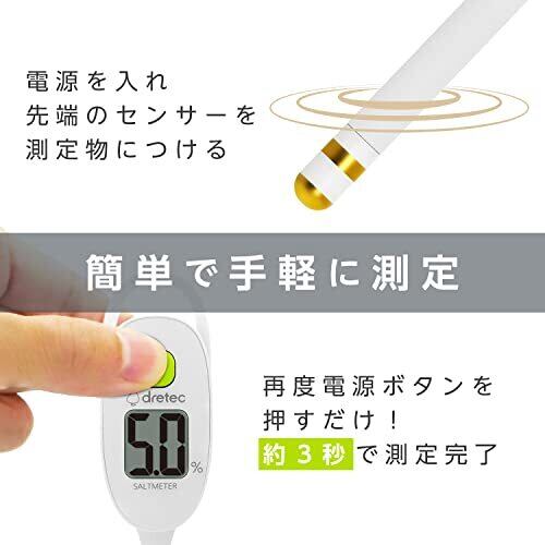 ドリテック(dretec) 塩分濃度計 防水(IPX7)だから丸洗いできる 0.1%単位/最大5%まで計測 大画面で文字が見やすい 塩分計 減塩 塩分計測器 水槽 減塩グッズ