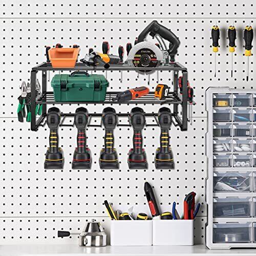 Rxakuded 壁掛け ツール収納 3段 工具棚 電動工具 収納ラック 鉄製 多機能 壁マウントスタイル ツールラック 長さ49cm 幅20cm 高さ20cm 作業場 ガレージ