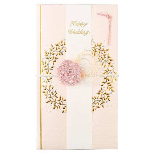 教会での結婚式にぴったりな洋風金封です。 水引にワンポイントでラインストーンをあしらい、パール紙と箔押しで品が良く落ち着いたデザイン。 【カラー】ピンク 【サイズ】105×185mm 【セット内容】「Happy Wedding」・「壽」の短冊2枚、外包、中袋(無地)1枚 【用途】婚礼用 【金額の目安】1万円~10万円くらいまで