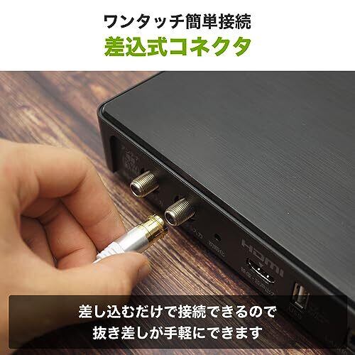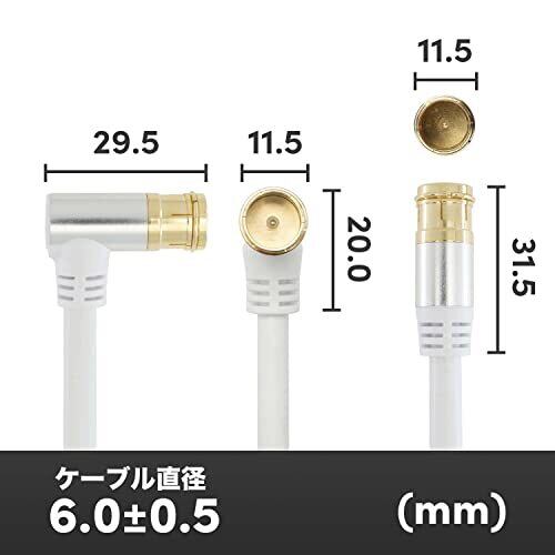 ●ケーブル規格:S-4C-FB ●コネクタ規格:F型 ●コネクタ形状:L字差込式-差込式(金メッキ仕様) ●コネクタサイズ ・L字差込式:W約11.5 x H約11.5 x D約29.5 mm ・差込式:W約11.5 x H約11.5 x D約31.5 mm ●インピーダンス:75Ω ●ケーブル直径:6mm ●ケーブル長:2m ●袋パッケージ ●保証期間:1年間