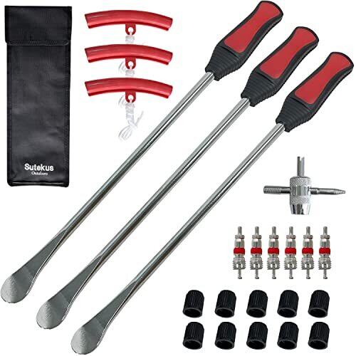 Sutekus タイヤ交換用ツール レバー3本 長さ38センチ リムプロテクター タイヤバルブコア&バルブコアレンチ 収納袋付き