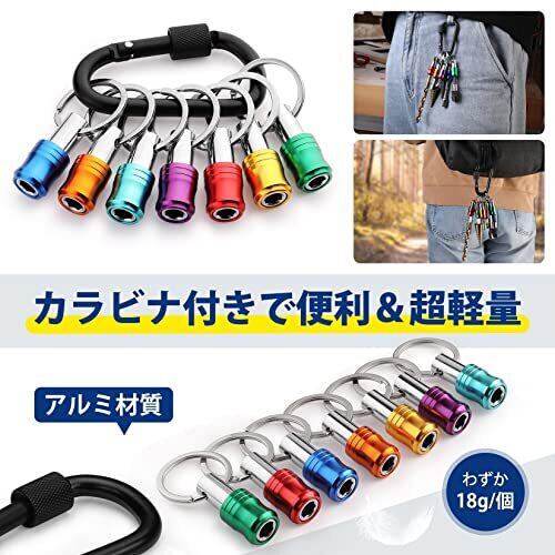 WORKPRO ビットホルダー ソケットホルダー ドライバービットセット 7色セット アルミ二ウム合金材質 色識別 キーホルダー固定 軽量 携帯用 収納