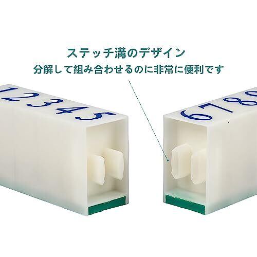 【印面サイズ】2.5mm×4mm (幅×高さ)。 【印面内容】0-9 組み合わせ。 【素材】ASB樹脂、ゴム。 【特長】スタンプの印面は弾力のあるゴム製でインクの馴染みが良く、捺印しやすいです。アラビア数字の自由に組み合わせ可能です。0から9までの各アラビア数字の内側にはスプライシングスロットのデザインがあり、分解して組み合わせるのに非常に便利です。 【用途】住所や電話番号、FAX番号などを書くのによく使われます。また、その他にも様々な機会に数字スタンプが利用できます。使うことで時間短縮になり、業務がスムーズに進行されるので、記載間違いを防ぐなど、メリットも多く存在します。