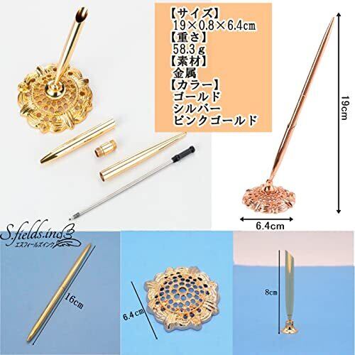 高級感のあるスタンド付きデスクペンです。ゴールド、シルバー、ピンクゴールドの3色からお選びいただけます。 結婚式の受付や、高級クラブラウンジ、社長室、応接間、ブランドショップなどで見掛ける金属製ボールペンです。 美しい流線形のシンプルなフォルムが光沢を放ち、ゴージャスな雰囲気となっております。 本体のボールペンは回転式となっており、持ち手にぴったりフィット。気持ちの良い書き心地となっております。 【サイズ】19×0.8×6.4cm 【重さ】58.3g 【素材】金属 【カラー】ゴールド、シルバー、ピンクゴールド
