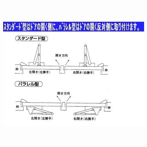 タイプ: パラレル型 勝手: 左右兼用 適合扉高さ(mm): 2100 ストップ角度: 約85~180° ストップ: 内装式