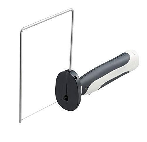 RoHS2適合品 電池4本式ハイパワーコードレス発泡スチロールカッター 100mm厚まで切断可能(弓型アタッチメント使用時)。 電池切れをLEDランプの色で知らせる、電池消耗お知らせ機能。 電池4本のパワーで押出ポリスチレンも切断可能。 垂直カットをサポートするガイドテーブル(弓形アタッチメント使用時)。