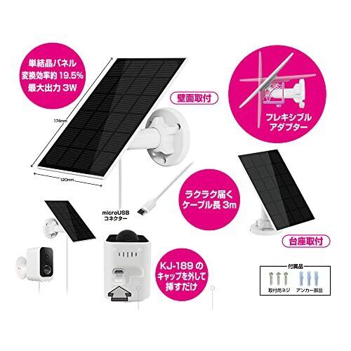 カシムラ スマートカメラ用ソーラーパネル 3W KJ-190 ホワイト
