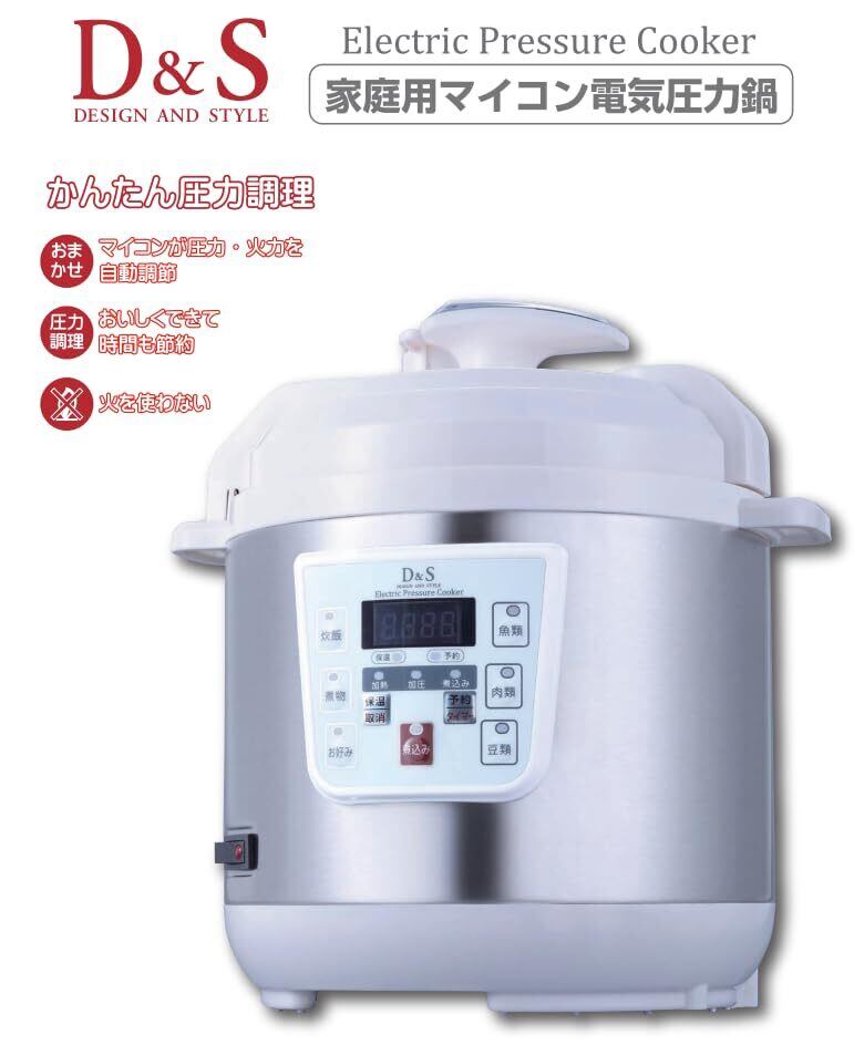 D&S ディーアンドエス 食材を入れてタイマーを押すだけ簡単調理電気圧力鍋 2.5L ホワイト ほったらかし 一人暮らし 炊飯 手軽に圧力調理 タイマー機能付き 再加熱もできるガラス蓋付き STL-EC30