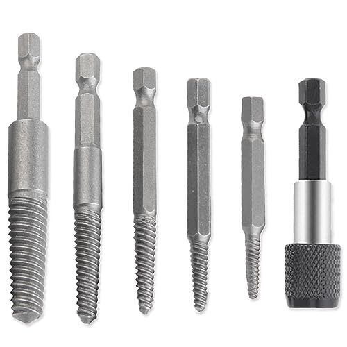 スクリューエキストラクター 六角軸ネジ取りビット 六角ハンドル ポストリムーバー付き ハンド ネジ山補修キット 逆タップ 抜き取り器 なめたネジはずしビット 6本