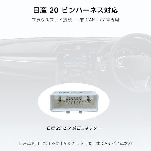 【日産 20 ピン ラジオコネクター対応】Xterra(2005–2015)、Altima(2002–2012)、Titan(2004–2015)、Rogue(2008–2013)、Frontier/Navara(2005–2014)、Sentra(2007–2012)、Pathfinder(2005–2012)、Versa/Tiida(2007–2012)、Quest(2004–2010)に対応。 【専用フィット設計】20 ピン電源ハーネスを使用する日産車、および 20 ピン電源ポート搭載のヘッドユニットに対応。プラグイン接続で加工不要(切断・圧着不要)。※CAN バス車両、またはアダプターボックスが必要な車種には非対応。 【純正機能を保持】AMP ターンオン(+)線:外部アンプを自動起動。リバーストリガー線:シフトをリバースに入れるとバックカメラへ即時切替。 【安定した信号伝送】常時電源、ACC、アース、イルミネーション、4 スピーカー出力を安定供給。カーオーディオ用電源アダプターとして、信頼性の高い動作と音質の維持をサポートします。 【製品サポート】ご購入日より 12 か月の製品ほ証。カスタマーサポートは 営業日 24 時間対応 でご案内します。
