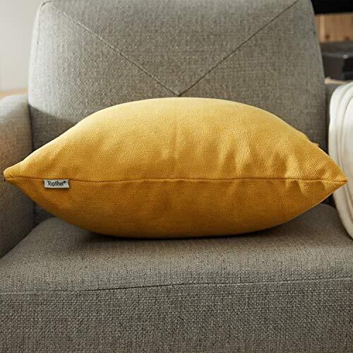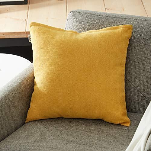 Topfinel クッションカバー リネンっぽい 45×45cm 北欧 おしゃれ 綿麻 無地 ソファ背当て 装飾枕カバー 座布団カバー イエロー 2枚セット(全10色)