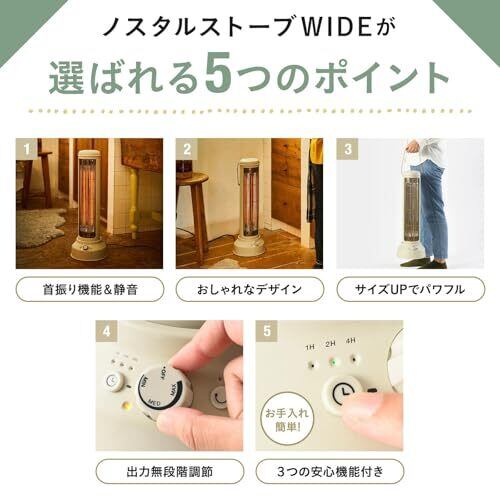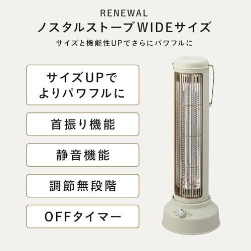 BRUNO ブルーノ カーボンヒーター 電気ヒーター タワー型 スリム 無段階調節 500W~1000W 首振り 強弱切替 静音 速暖 タイマー 自動オフ 転倒オフ 安全設計 NostalStovewide グレージュ BOE077-GRG