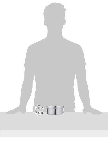 収納セットサイズ:(約)外径150×高さ75mm(本体のみ) 重量:(約)400g セット内容:鍋(14cm・12cm)各1、15cm皿(ふた)1、13cm皿(ふた)1、12cm皿1 材質:ステンレス鋼 原産国:日本