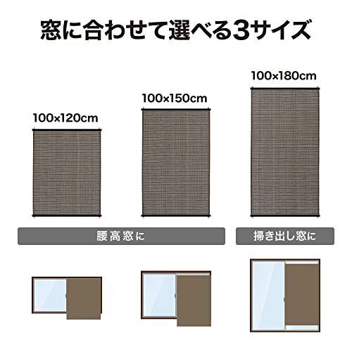 サイズ:約幅100x高さ120cm 材質:生地/ポリエチレン、桟/塩化ビニール樹脂、キャップ/ナイロン 生産国:中国 紫外線・UVカット率:約81% 遮光率:約80% 完成品 日差しを遮り、室内の温度上昇を抑える。