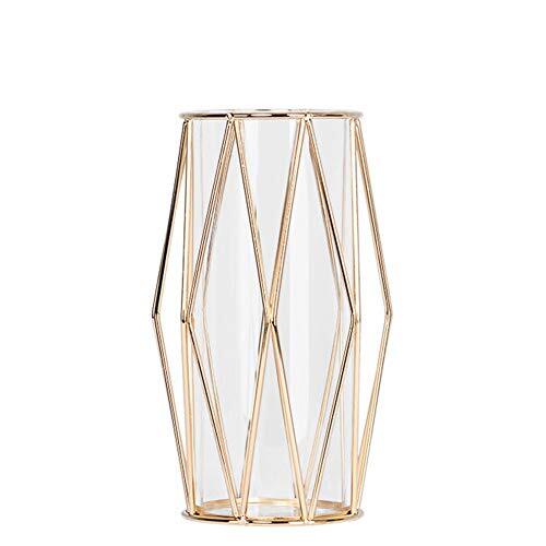 異素材の組み合わせの新しいフラワーベース。北欧風のシンプルデザインですので、部屋のどこに置いてもすんなりと馴染みます。菱形のメッキ仕上げの鉄フレーム×ガラスの異素材の組み合わせがおしゃれ。ガラスの容器と鉄のフレームを分離することができ、ガラスの容器を取り出すと、植物に水を換えることが簡単です。生け花やドライフラワーなどを飾ればお部屋が華やかになります。 色:シャンパンゴールド 素材:ガラス、鉄(メッキ仕上げ) サイズ:直径約10cmX高さ22cm ※サイズ表記は手作業で行っておりますので、実物と若干の誤差が生じる場合があります。 重さ:約610g お誕生日プレゼント、母の日、クリスマス、ギフトなどに喜ばれるアイテムです。 ※花はついていません ※海外製品のため小さなメッキ剥がれや汚れ等がある場合がございますが全体の華やかさには影響ありません。※手吹きガラスにつきガラス容器の口部分が平らでない場合がございます。底部中央にポンテ跡の隆起があり、若干のガタツキが見られる場合がございますが、これらは仕様のためご了承下さい。※輸入時の破損有無等検品のため、全数開梱跡がございます。予めご了承の上お買い求めください。