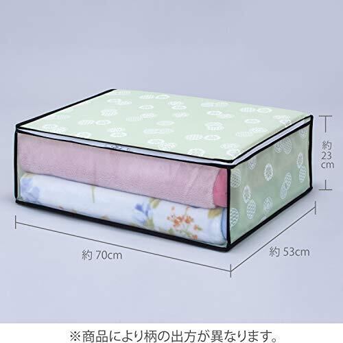 【商品仕様】:サイズ/約幅70×奥行53×高さ23cm、カラー/グリーン、柄/和モダン柄、内容/2枚、収納目安(袋1枚あたり)/厚手毛布:約2枚、材質/ポリプロピレン・ポリエチレン 【通気性にすぐれた不織布製】:通気性の良い不織布で毛布、タオルケット、薄手の掛け布団などを湿気やホコリから守り大切に保管。 【オリジナルのモダンな和柄】:オリジナルの和モダン柄がオシャレで、和室にも洋室にもピッタリ。 【大きく開く三方ファスナー】:ダブルファスナーで3辺が開くので、収納物の出し入れがスムーズ。 【透明窓付きで中身が分かる】:前面の透明窓で袋を開けずに中身が分かるので、探す手間も省ける。