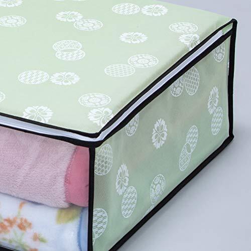 アストロ 布団収納ケース 毛布 軽寝具用 2枚組 通気性の良い不織布がホコリなどの汚れをガード 中身の見える透明窓付き 布団収納 布団袋 収納ボックス 収納袋 引っ越し クローゼット 押し入れ グリーン 和モダン柄 613-36