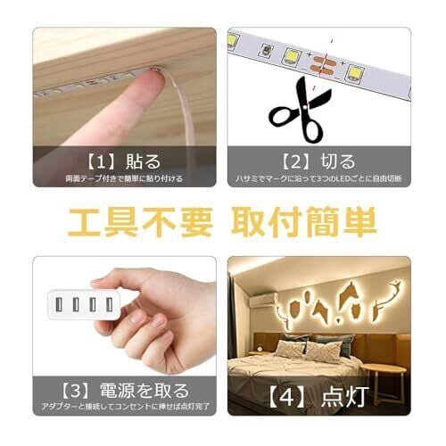 LEDテープライト ストリップライト 昼白色 5m 人感 防水 高輝度 明るさ調整 無段階調光 両面テープ 取付簡単 USB給電式 コードクリップ付き 雰囲気作り 屋内外装飾 祝日用 日本語説明書付き