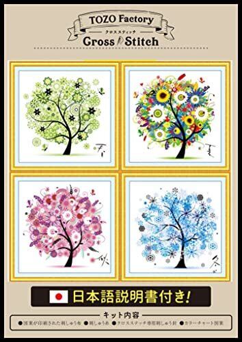 (TOZOファクトリー) クロスステッチ 刺繍キット 刺繍 ししゅうキット 図柄印刷 日本語説明書付き 絵画 11CT 風景画 自然 風水 春夏秋冬 4枚セット