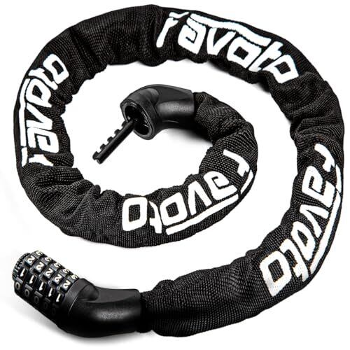 Favoto 自転車 鍵 チェーンロック 約94cm/114cm 8mm 5桁ダイヤル式 パスワード変更可能 カギ不要 2層構造 盗難防止 ロードバイク鍵 バイクロック ダイヤルロック 日本語説明書付き グレー
