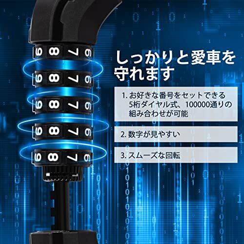 【5桁ダイヤル式】5桁の暗証番号が設定できます。数字5桁式となっており、100000通りの組み合わせが可能となっていて、より防犯性を高めます。持ち運び用の鍵を使用することなく便利で盗難も防止できます。 【高い強度】チェーンは高い強度の材質を採用し、耐久性の高い専用カバーでチェーンを保護して優れた耐摩耗性、防錆性、切断抵抗を持っています。防犯性能は優れています。【サイズ】チェーン部分の長さは102cm、ロック部分の長さは12cmで、全長は114cmです。 【盗難防止】切断にくいほどの高い強度のスチールリンクケーブルを採用しているため、しっかりと愛車を守れます。2層構造で安心のロックスタイルです。 【使いやすい】チェーンロックは長さが114cmで、施錠するのには便利です。使用するときには広げて輪状にして使います。バイク、自転車、ロードバイク、クロスバイクをポールや柵などに固定でき、高いセキュリティレベルを実現しています。 【持ち運び便利】軽量で、好きな5桁の番号をセットできるダイヤルロック式なので、鍵を携帯しておく必要がないです。通勤や、サイクリングなどの場合、最適です。【収納便利】使わないときには小さく折り畳み、コンパクトに縮むことができます。【品質保証】商品管理、検品は十分しておりますが、もし不具合などが生じた場合は、注文番号をご連絡いただき、交換対応させていただきます。安心してお試しください。【連絡方法】アカウントサービス>注文履歴を開きます>「出品者」のリンクをクリックします>詳細の「出品者に連絡」をクリックします。
