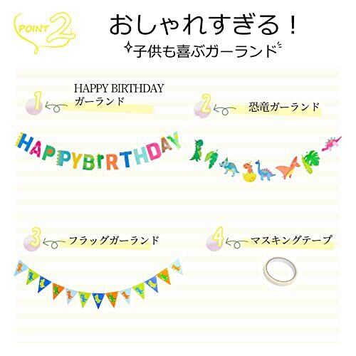 Paready 誕生日 飾り付け 恐竜 ガーランド バースデー 飾り セット デコレーション Happy Birthday ドラゴン 装飾 飾り付けセット ハーフバースデー 100日 お祝い インテリア 男の子 子供(恐竜セット)