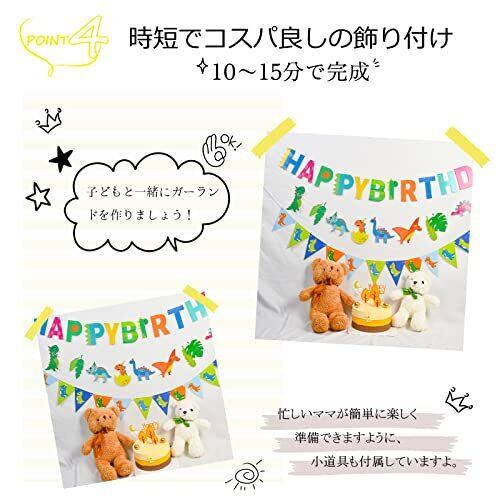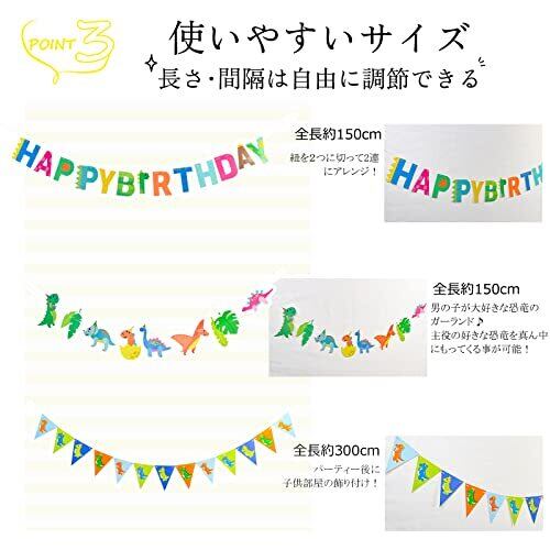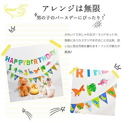男の子の誕生日で不動の人気を誇る恐竜テーマの飾り付けセットです。ガーランドの作り方が簡単で、飾るだけで空間が一気に華やかになるので、不器用さんでも上手にアレンジできます。忙しいママやパパでもお子さんが喜ぶ装飾を!主役も大満足の一日を過ごし、家族みんなにとってもきっと素敵な思い出になります セット内容:HAPPY BIRTHDAYガーランド×1、フラッグガーランド×1、恐竜ガーランド×1、マスキングテープ×1。糸が細く絡ありやすいので、取り出す際ご注意ください。 お誕生日はもちろんハーフバースデー、100日祝い、出産祝い、成人式、ホームパーティー、撮影会など大切な記念日やイベントでも活躍します。ガーランドを壁や空間に飾るだけでおしゃれで華やかな雰囲気を演出できます 場所を取らず収納も簡単なガーランドです。忙しい方や細かい飾りつけが苦手な方にもぴったりで手軽にお家スタジオを作ることができます。シンプルながら特別感があり思い出に残る写真を撮ることが可能です ご注意: 商品写真はできる限り実物の色に近づけるよう配慮しておりますが、お使いのモニター設定や室内照明により、実際の商品と色味が異なる場合があります